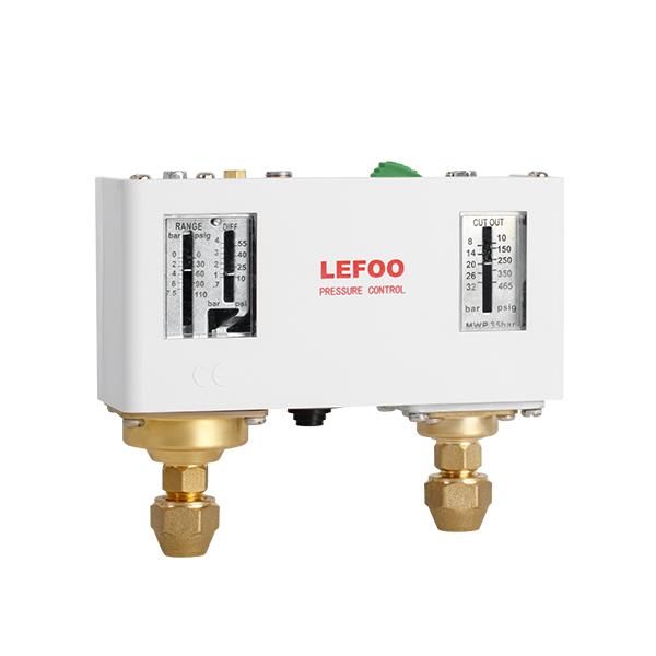 LF58系列雙壓力控制開關(guān)通常用于控制制冷系統(tǒng)中壓縮機(jī)的壓力。該開關(guān)適用于制冷劑外還可用于控制氣體、水和油壓力。內(nèi)部微動開關(guān)結(jié)構(gòu)確保開關(guān)良好的性能。LF58系列能開關(guān)同時(shí)控制高低兩檔壓力。開關(guān)配有標(biāo)準(zhǔn)安裝支架。